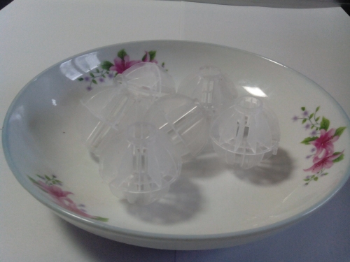 采用聚丙烯塑料制成球狀,在球中部沿整個(gè)周長有一道加固環(huán),環(huán)的上下各有十二片球瓣,沿中心軸呈放射形布置,適用于二氯化碳脫氣塔,接觸反應(yīng)塔等裝置。